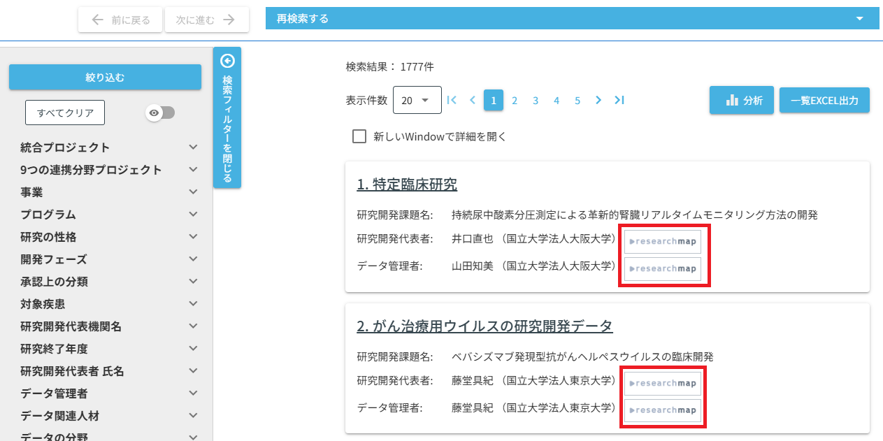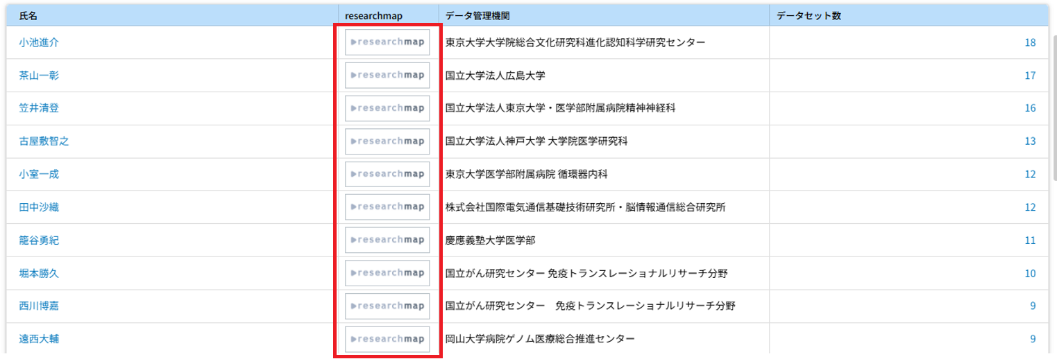 研究開発代表者、データ管理者、データ関連人材の氏名の横に researchmap へのリンクを追加しましたのでご活用ください。